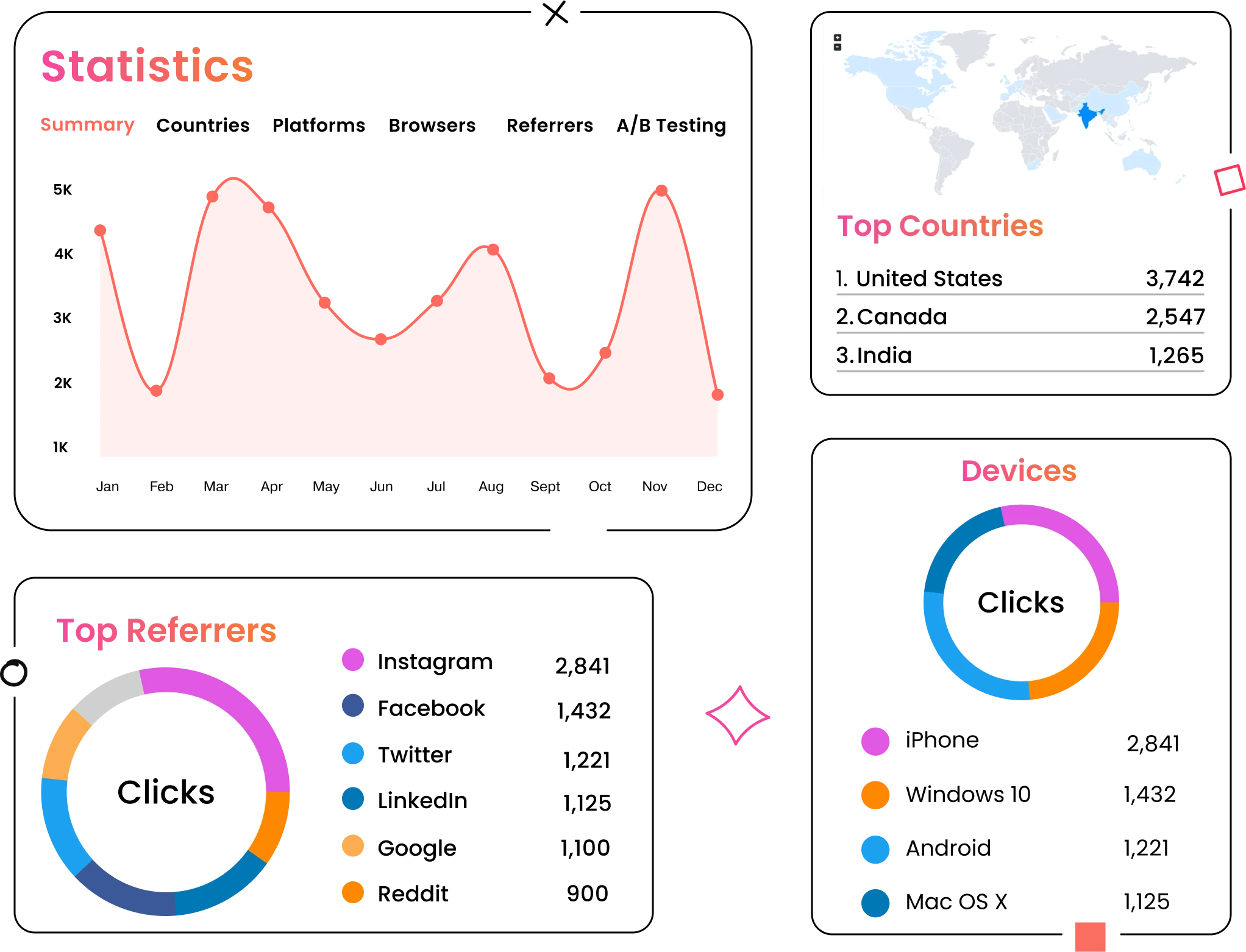 - Analyze detailed link performance metrics to gain insights and optimize your marketing strategies effectively.